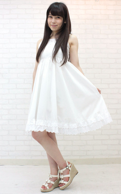 肩紐の可憐なリボン結びや、裾のレースが愛らしい!日焼けした肌にも見事に映えるワンピースは、コーディネイト自在のサマーコスチュームです。