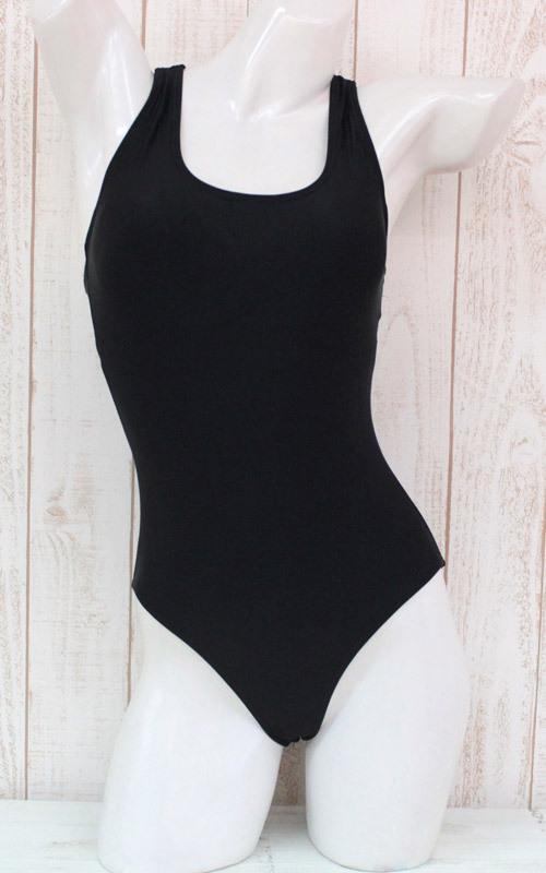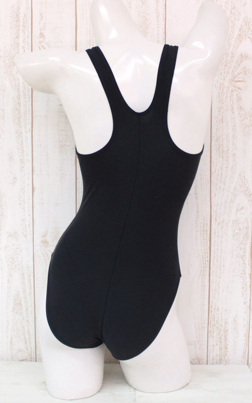 ボディが引き締まって見えるブラックカラー!少しハイレグになったデザインが、ソフトなセクシー感を演出するスクール水着です。