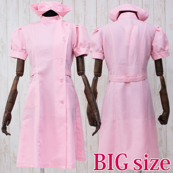 ボリュームのある半袖パフスリーブがキュート!女装に最適なBIGサイズの桃色ナース服セット。