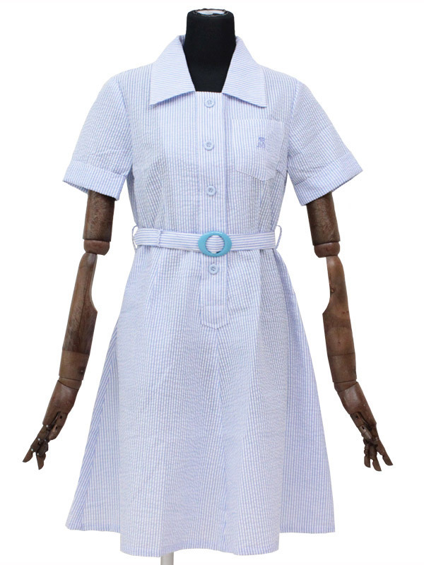 水色と白のストライプ柄がとっても涼しげな盛夏服タイプの制服コスプレ(M)。