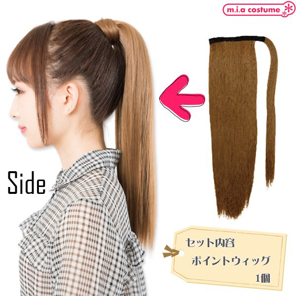 着脱式で使いたいときに手軽に使えるポイントウィッグです。マジックポニーで簡単イメチェン♪カラーはハニーブラウンで、二つ使えばツインテールにもアレンジ可能!毛質はサラサラで地毛に馴染みやすく、明るめの地毛に合わせやすいです。※商品は一つ入りです