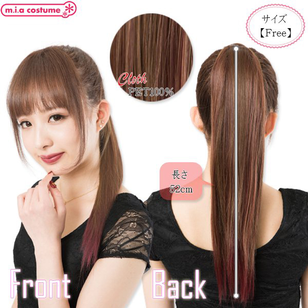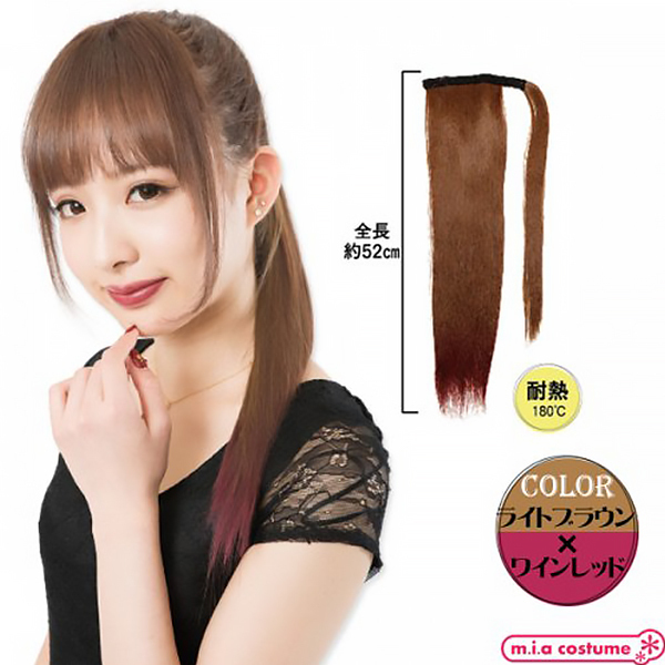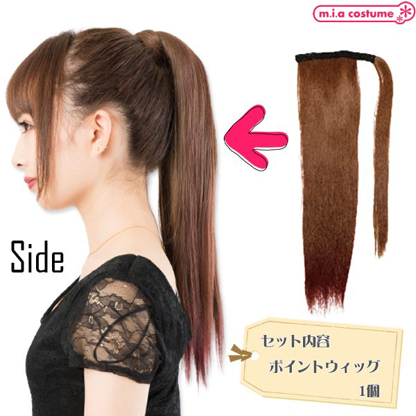 着脱式の耐熱ポイントウィッグです。マジックポニーで簡単イメチェン♪二つ使えばツインテールにもアレンジ可能!地毛に馴染みやすいサラサラの毛質で、発色の良いライトブラウン×ワインレッドのカラーリングはライブなどのイベントにもおススメです!※商品は一つ入りです