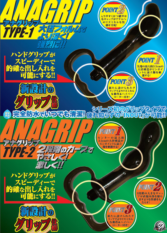 グッと握れるハンドグリップ!お尻の穴をしっかり刺激する電動アナルグッズです。ストッパー兼用の持ち手をグリップ式にしたことで、しっかりとした操作が可能になりました。こちらの「TYPE-02」は、ひょうたん型の先端が腸壁や前立腺を刺激しやすく工夫されています。底部にスティックローター内蔵!完全防水仕様、クリアブラックのシリコン製アナルバイブです。単4電池×1個付属。