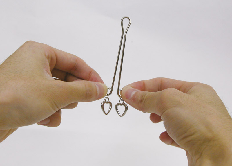 つまんで挟んで、甘い刺激。クリトリスをそっと挟み込む、魅惑のヴァギナ用クリップ(2本入り)。挟むことでクリが強調され、感覚はより敏感に。アクセサリーのように付けられる、オシャレで可愛いハートのチャーム付き!ハートが揺れるたびに振動が秘部に伝わります。根元は強めで持つ側は弱めと、付け方次第で僅かですが強弱の調節も可能です。
