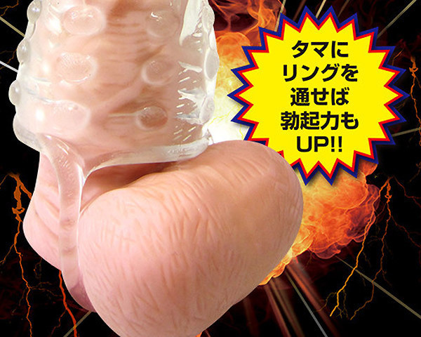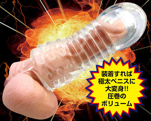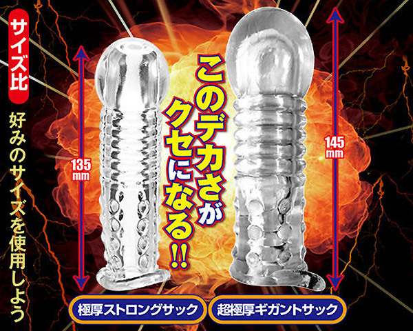 超巨大な亀頭に彼女もびっくり!逞しくさらに強くペニスを強化する「超極厚ギガントサック」です。