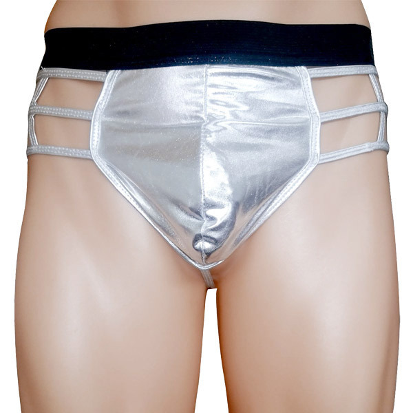 近未来的なデザインがCOOL!まるでショーの衣装のように華やかなキラキラ系男性下着。●シルバーに輝くメタリック風素材●ウエスト部分は幅広ゴムでぐるり●ベース型で覆う立体加工フロント●サイド〜バックにかけてネット状●ストリングのみのSEXYバック。対極にある「隠す」と「見せる」をバランスよく釣り合わせたセクシー下着!目が眩みそうなシルバーのきらめきと肌見せ感で、男の色気をたっぷり引き出します。