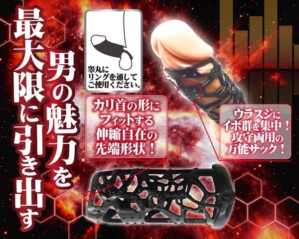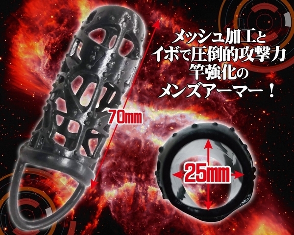 ●メッシュ&イボのステンド●サイズを選ばない伸縮素材●裏筋にイボを集中的に配置●カリ首をホールドする設計●固定できる玉掛けリング付き。