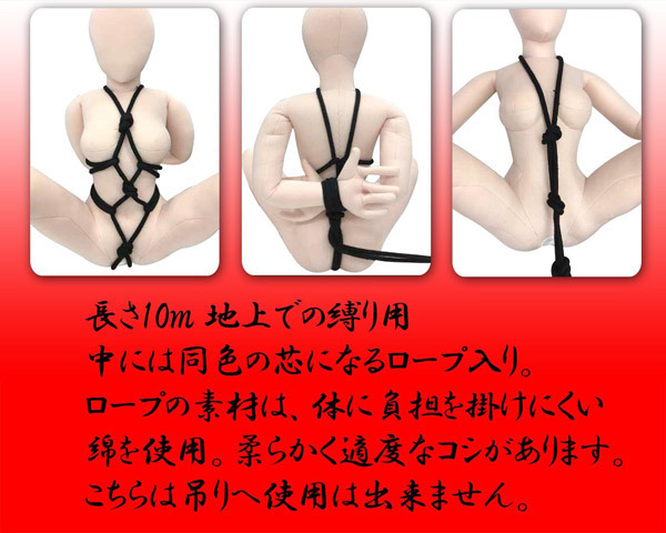 ●身体に負担をかけない綿素材●柔らかく適度にコシのある仕上がり●様々なプレイを実現する長さ10m●使用後は洗濯も出来て衛生的●緊縛師「青山夏樹」推薦。