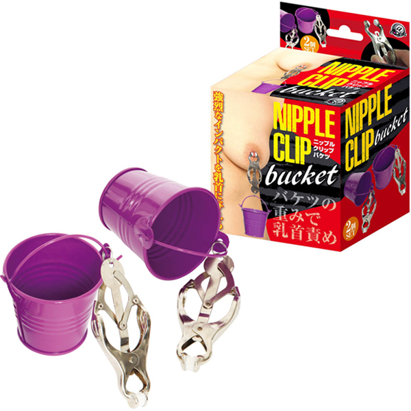 バケツの重みで乳首責め!水や砂利などお好きなものを入れて、乳首に荷重をかける…ゆっくり荷重をかけるもよし、一気に荷重をかけるもよし、工夫次第で様々な使い方ができる。強烈な力で挟み込むクリップ付きで、乳首に強烈なインパクトを与えます。