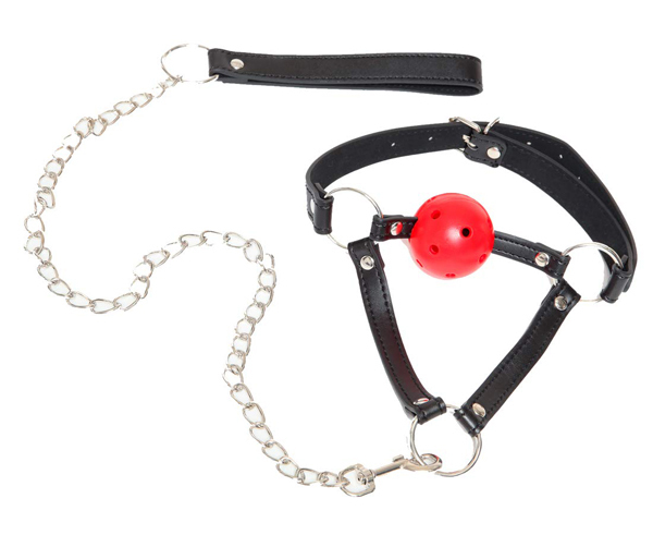 さらなる羞恥プレイを求め、調教がさらに加速!直径45mmのプラスチック製ボールが付いたSMのド定番の口枷に、リードが付いているのでより一層恥辱が楽しめます。バンド部分はフェイクレザーを使用した本格仕様。シンプルながらも本格的に楽しめる口枷です。