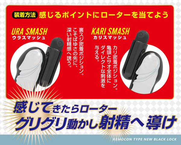 爆発的人気の亀頭責めローター「ブラックロック」シリーズ最新作!小型リモコンによる遠隔操作でハンズフリーで楽しめるUSB充電式ローター。