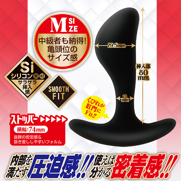 フィット感抜群で前立腺をプッシュするたまご型ヘッドが前立腺を圧迫&密着する!サラサラシリコン素材で滑らかな挿れ心地が前立腺を拡張&開発してくれます♪素材はサラサラシリコン素材で挿れ心地もよくお尻へのフィット感も抜群!挿れっぱなしでもOKなぐらいで安定感抜群のフォルムだから抜き差ししやすく扱いやすいです♪使えばわかるこの挿れ心地!こちらはMサイズで中級者でも納得の、亀頭大程度のサイズ感。