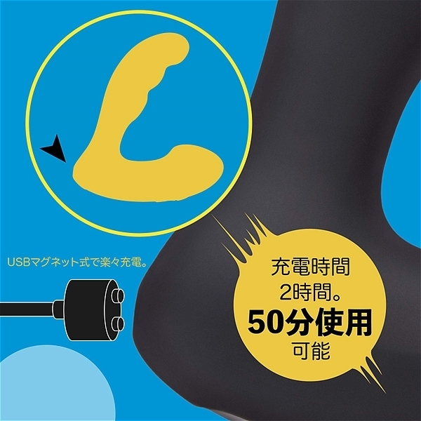 本体のみでももちろん使用は可能ですが、付属のリモコンを使用すれば、2つのポイントを個別に動作させることができるため、自由気ままに組み合わせて自分専属の気持ち良さをチューニング♪ピタッと簡単なマグネット式充電ポートでIPX7等級完全防水となっているため、どんな水性ローションでも安全に使用可能、使用後は石鹸と水で簡単に丸洗いできるので、快感を得ることだけに専念しましょう♪●充電2時間で約50分使用可能