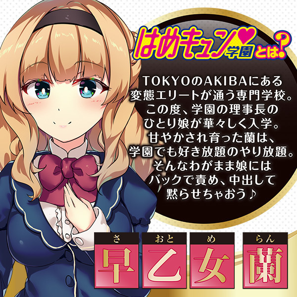 性春日本代表♪アニメ系エアドールシリーズ「はめキュン学園」に、学園理事長のひとり娘『ラン』が華々しく入学!!甘やかされて育った『ラン』は、学園でも好き放題のやり放題。