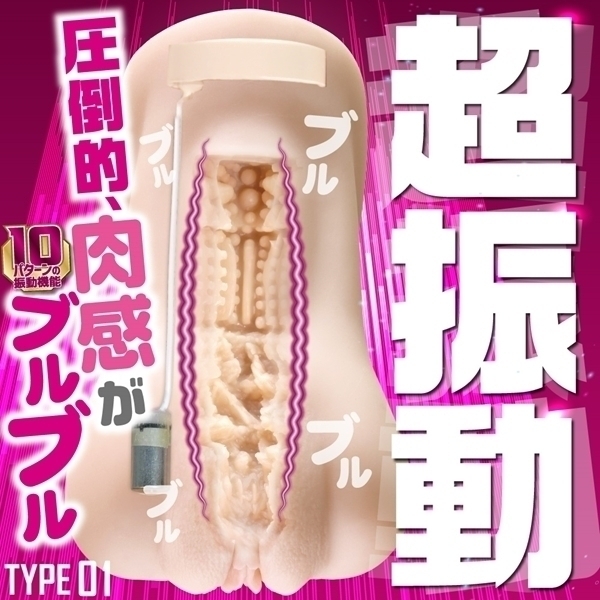 TYPE01は腰回りの肉付きが特盛!無次元ヒダの入口から様々なタイプのイボへと繋がる内部構造は、ローターの振動との相性を重視したメリハリ構造!10パターンの振動で快感をググっと高めます。