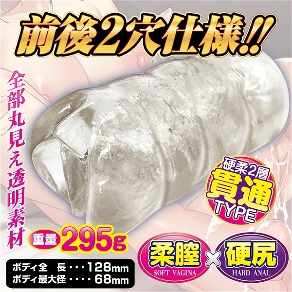 肉厚透明素材がググっと締め付ける!ソフト素材とハード素材のシームレス貫通ホール。