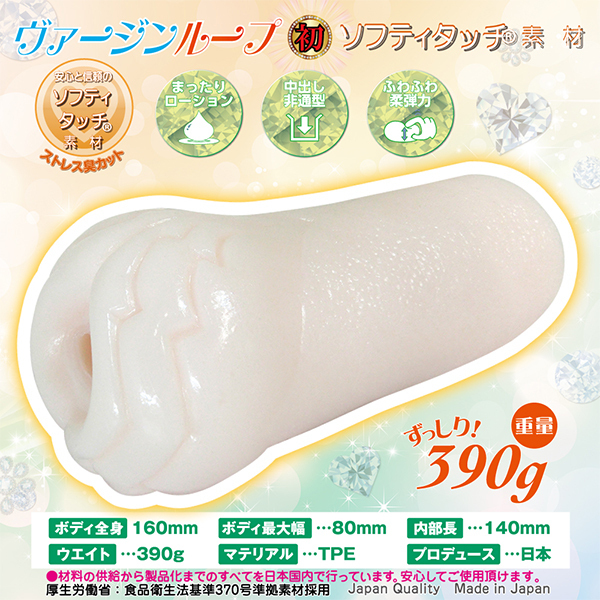 「ヴァージンループ」特有のヒダに、ふわとろ系を組み合わせたまったり刺激の非貫通オナホが登場!2mmほどの太く柔らかな縦横ヒダが貴男のムスコを4方向から愛撫するように優しく刺激、身も心も癒される気持ち良さが貴男を包み込む♪ふわっとまったり系が好きな方はぜひどうぞ。ローション付、安心安全の日本製