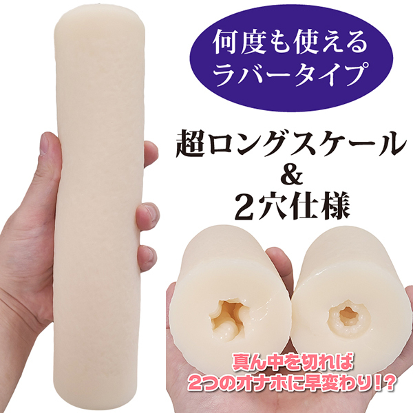 超ロングな筒状のオナホとなっており両方から挿入が可能。左右で内部造形が違い、お互い別の感触を楽しめます。そして中央部では兜合わせが可能となっております。片方はイボベースのゴリゴリ感が味わえるタフな作り、もう片方はヒダとイボのミックスとなっております。コンドームを装着してのプレイを想定して、作りもややハードに出来上がっております。2人で感じる。2人が繋がる…最高のプレイオナホがここに誕生。