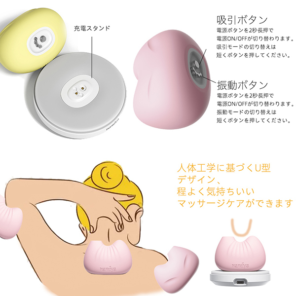 箱ごとに充電もできて使い心地バツグン!生活防水仕様となっているので、お風呂やプールなどの水場で楽しんだり使った後は水洗いしてお手入れすることができます!また次も安心して楽しむことができるのも魅力です!カラー:イエロー●生活防水(IPX4)●6段階吸引+7段階振動●医療用シリコン素材、ABS●USB TYPE C充電●充電時間:100分、稼働時間:90分●電池容量:420mah