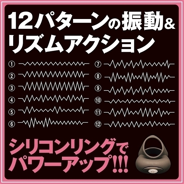 シリコンリングでパワーアップ!2パターンの振動&リズムアクション、フィト感抜群の肉厚シリコン、肌に優しく自然の感触、伸縮性抜群!高品質シリコンの滑らかな肌触り、柔らかく伸縮性の高い最高級シリコンを使用、シリコン素材が適度な締め付けを実現、ぴったりフィット、リング内径:35mm、45mm、45mm●素材:シリコン、ABS樹脂●振動パターン:12パターン●充電方法:USB充電式●防水:生活防水●使用時間:最長30分●充電時間:20分