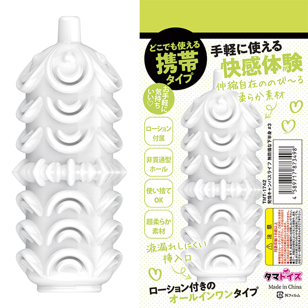 どこでも使える携帯タイプ。プリプリ高弾力タイプ、ローション付きのオールインワンタイプ、肉厚な柔らかシリコン使用で手軽に使える快感体験。伸縮自在ののび〜る柔らか素材、液漏れしにくい挿入口。 セット内容:非貫通式ホール、ローション●メーカー型番:TMT-1742