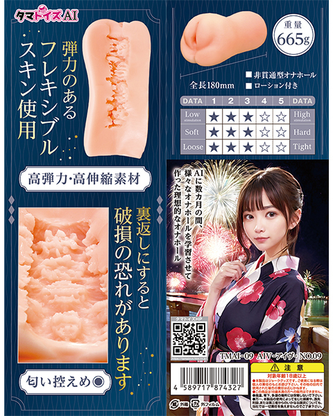 AIが学習して設計した新しいオナホールです♪タマトイズの独自素材「フレキシブルスキン」を使用し、弾力性と伸縮性に優れた快適な使用感を提供します!左右のヒダが狭く設計されており、上下左右からしっかりと挟み込むような感触で、強い刺激を楽しむことができます♪花火の大輪をイメージした肉厚ヒダ構造が、さらに気持ち良さを引き立てます!匂い控えめで使いやすい非貫通タイプです♪●メーカー型番:TMAI-09