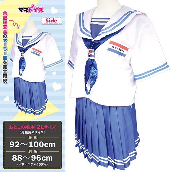人気VTuber合歓垣天音とのコラボによる特別なセーラー服です♪キャラクターのデザインを細部まで忠実に再現し、ファンにとってたまらない一品となっています!このセーラー服は涼やかな半袖タイプで、爽やかなデザインが特徴です♪ポリエステル100%の軽くて丈夫な素材を使用しており、長時間の着用でも快適な着心地を提供します!このセーラー服はおとこの娘用に特別に設計されており、2Lサイズとして幅広い体型にフィットします♪ TAMS-1226