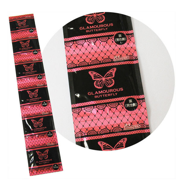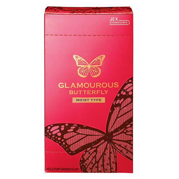 先端にマリンコラーゲン、ヒアルロン酸配合の潤いゼリー付き!流行に敏感なティーン世代の女の子達が「女性たち自身が欲しくなるコンドーム」をコンセプトに作ったお洒落コンドーム「グラマラスバタフライモイスト1000」12個入。デザインだけじゃなく、あれもこれも欲しい女性ならではの悩みに応えた潤いタイプのコンドームです。