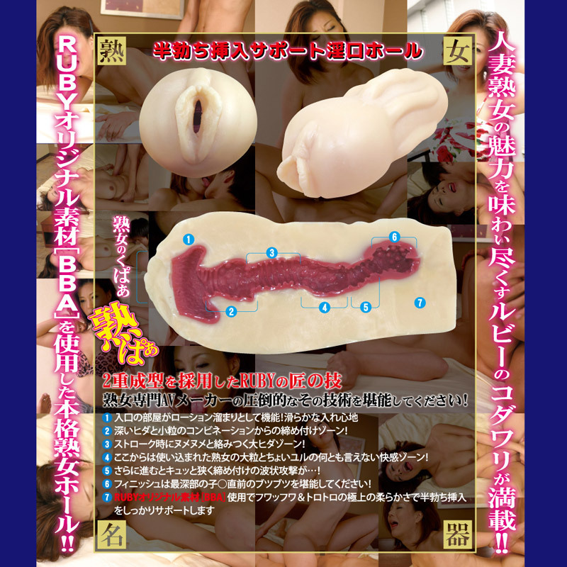 ●純淫「藤木未央」のアソコを完全再現●RUBYオリジナル素材【BBA】を使用●「熟ぱぁ」な挿入口は半勃でも挿入可能●挿入口すぐにローションポケット●スムーズな挿入をサポート●ヒダと大小様々なツブが繰り返し刺激●熟女とは思えない締め付けがフィニッシュへと促します。