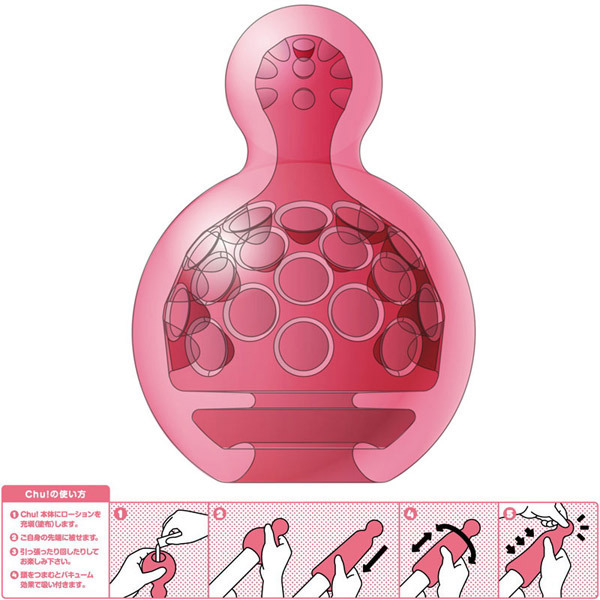こちらは内部につぶつぶ突起形状を採用!先端部分をつまんで内部の空気を抜けば、バキューム効果で驚きの吸い付き感に。