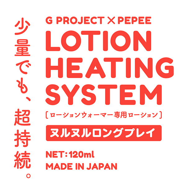 G PROJECT×PEPEEによるLOTION HEATING SYSTEM ローションウォーマー(v02705)で温める専用ローション!より温かく感じるように独自に開発しました!ヌルヌルの感触が心地いい高粘度タイプ。
