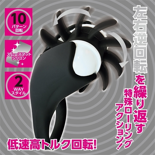 指にはめたり、リングとして着用してク○や乳首を刺激!リバース回転を繰り返す動きを含む10パターンアクション。
