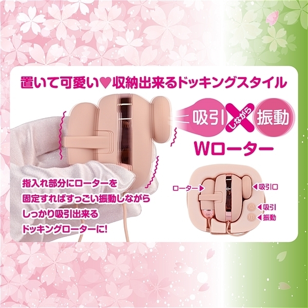 フィンガーリングにもう一つのローターを固定すれば強力振動シゲキと真空吸引シゲキを同時に楽しめます。